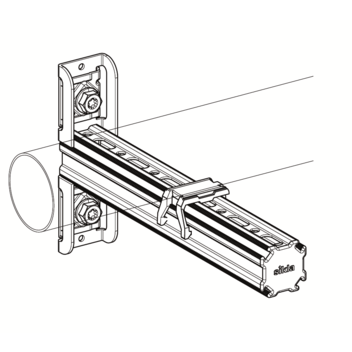 Schalldämmende und isolierende Rohrauflage aus Kunststoff in Verbindung mit dem Montageprofil PRO 46 und in Kombination mit Rundstahlbügeln.